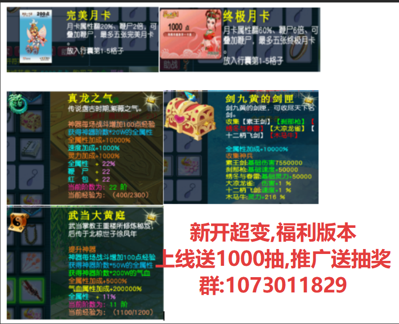 ★★★仿官微变★★★新区刚开一秒--星云梦野 【裙号:416945466 】 ★★★仿官微变★★★新区刚开一秒--星云梦野 【裙号:416945466 】 开放九黎门派 材料自动挂机 装备礼包掉落 ★仿官微变★材料全靠打、内容多、福利好、绝对养老服★★★ 持续更 ...